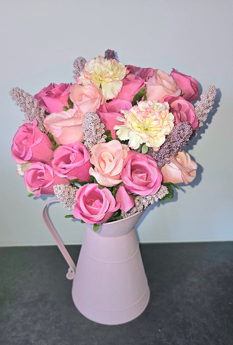 Large Pink Artificial Rose Bouquet in Pink Zinc Jug